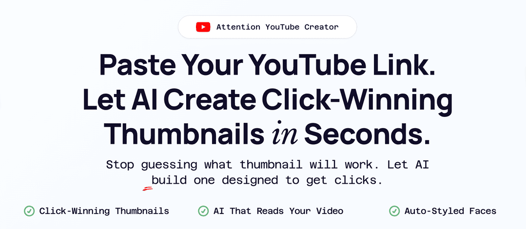 The challenge is that thumbnails are the most important part of a video and also the hardest to get right. Designing them yourself takes hours with no guarantee, freelancers are expensive and slow, and big creators have teams that test at scale. AI tools like ChatGPT don’t solve this either—they’re unpredictable and difficult to refine.