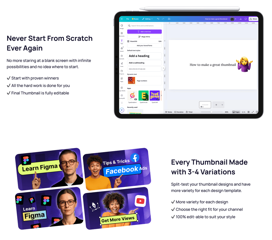 - Equivalent to having a full thumbnail design team, weekly.