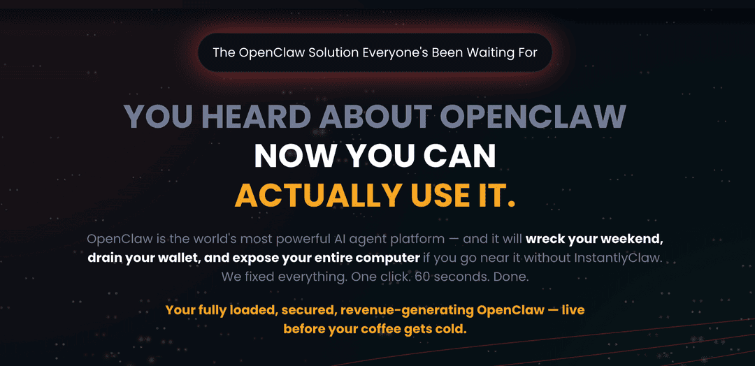 InstantlyClaw is the first product that gives you OpenClaw the way it should be: hosted, secured, configured, and working. Not a course. Not a blank box. A complete system you can use and profit from in 60 seconds.