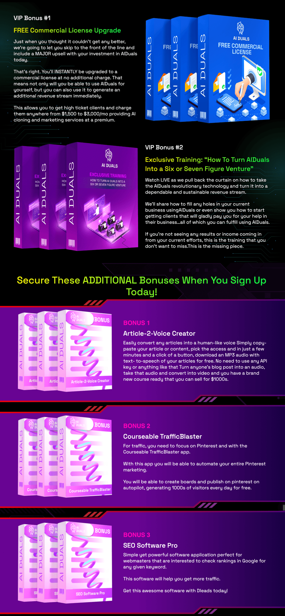 Get AIDuals And Get All These Exclusive Bonus Packages: