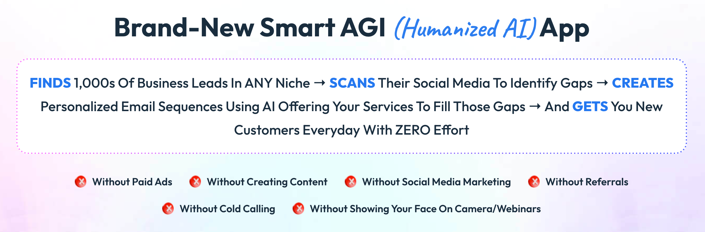 Plus, Free commercial license is included that allows you to start your smart AGI (Humanized AI) powered lead generation & email marketing agency & charge your clients every month to help Run & Grow their business.