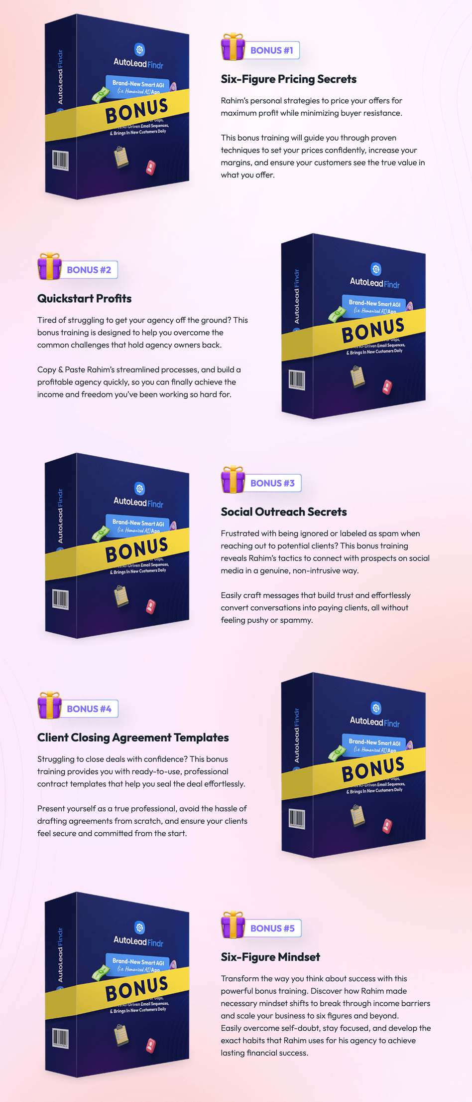 Get AutoLeadFindr And Get All These Exclusive Bonus Packages: